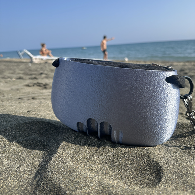 Clutch stampata in 3D , realizzata con materiali eco-friendly, PLA, disponibile in diverse varianti di colore e finiture opache o metallizzate o a righe. Sacca interna chiusa da zip.