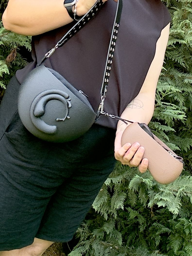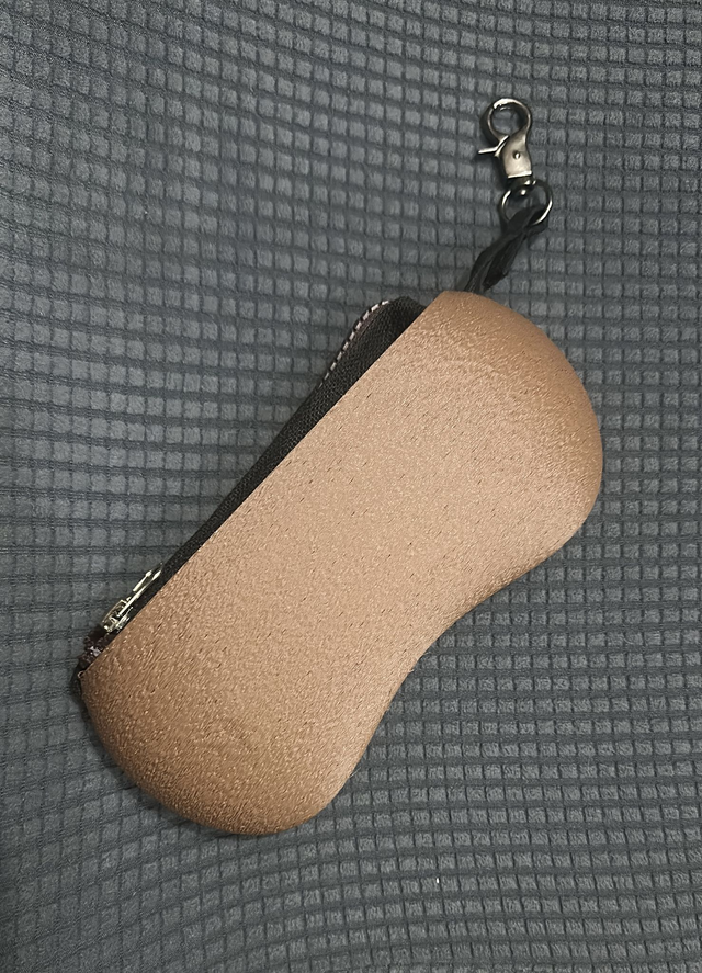 3D printed glasses pouch, made with eco-friendly materials, PLA, available in different color variations and matt or metallic or striped finishes. Internal bag closed by zip.