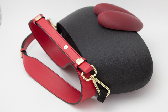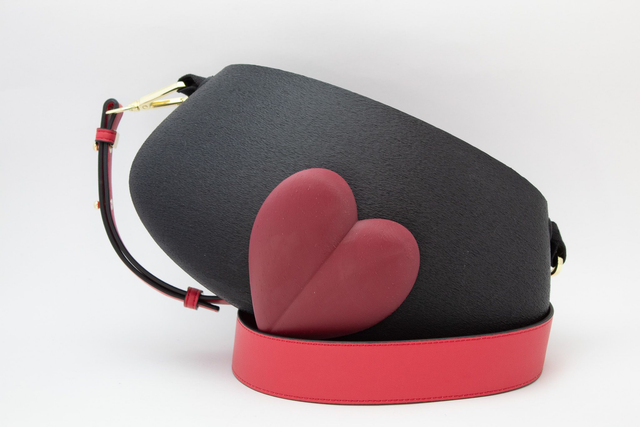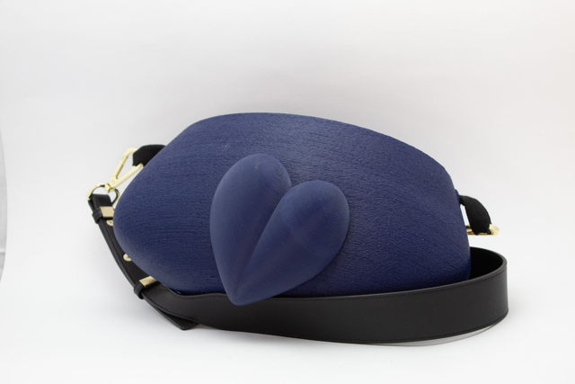 3D printed bag, made with eco-friendly materials, PLA, available in different color variations and matt or metallic or striped finishes. Internal bag closed by zip.